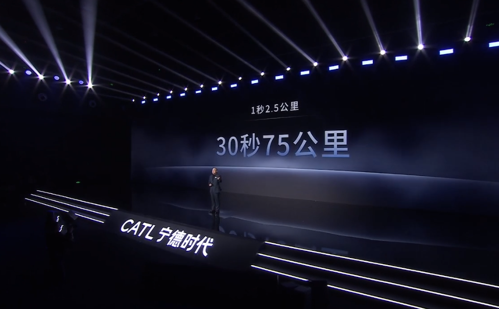 可以实现1秒2.5公里,30秒75公里的快速充电速度。