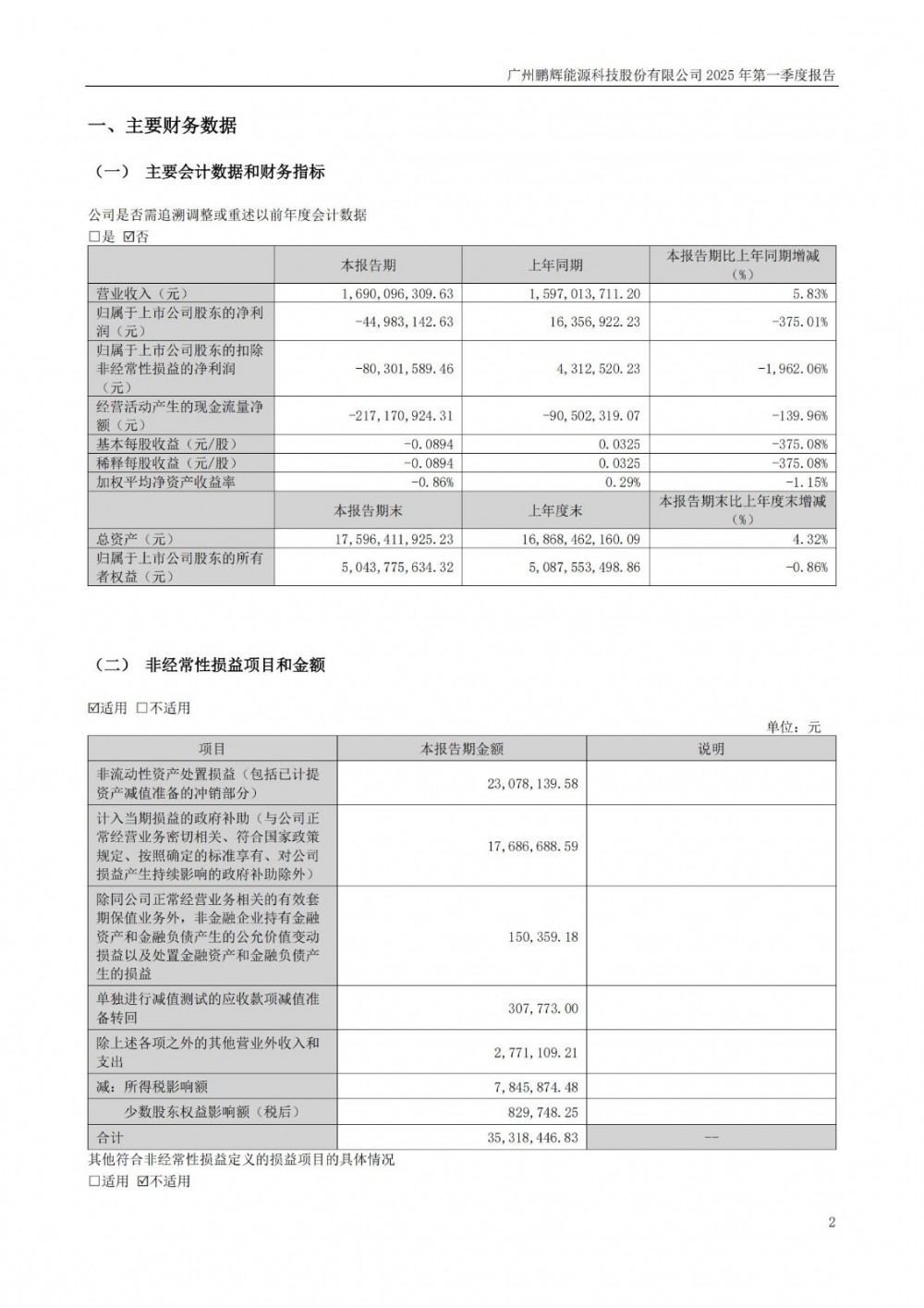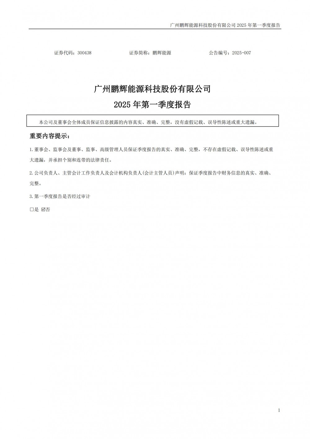 4月23日,鹏辉能源发布2025年第一季度报告。一季度,公司实现营业总收入16.9亿元,同比增长5.83%,归母净利润亏损4498万元,同比下降375.01%。