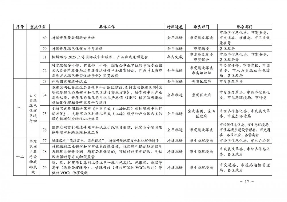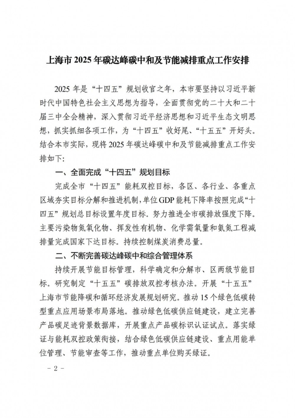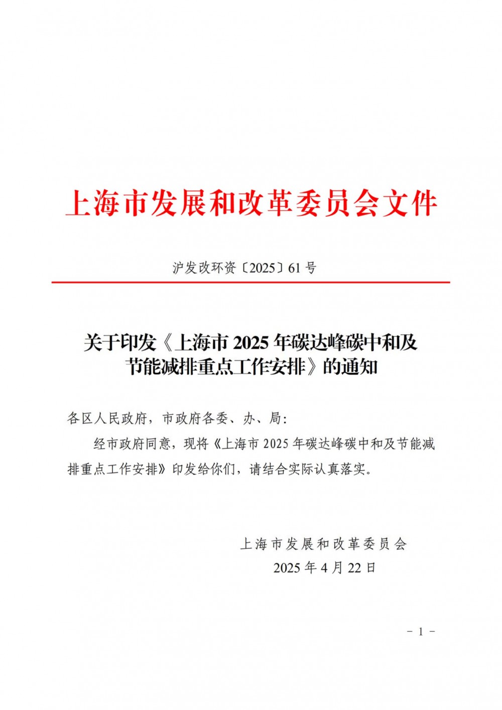 4月23日,上海市发展和改革委员会印发《上海市2025年碳达峰碳中和及节能减排重点工作安排》。