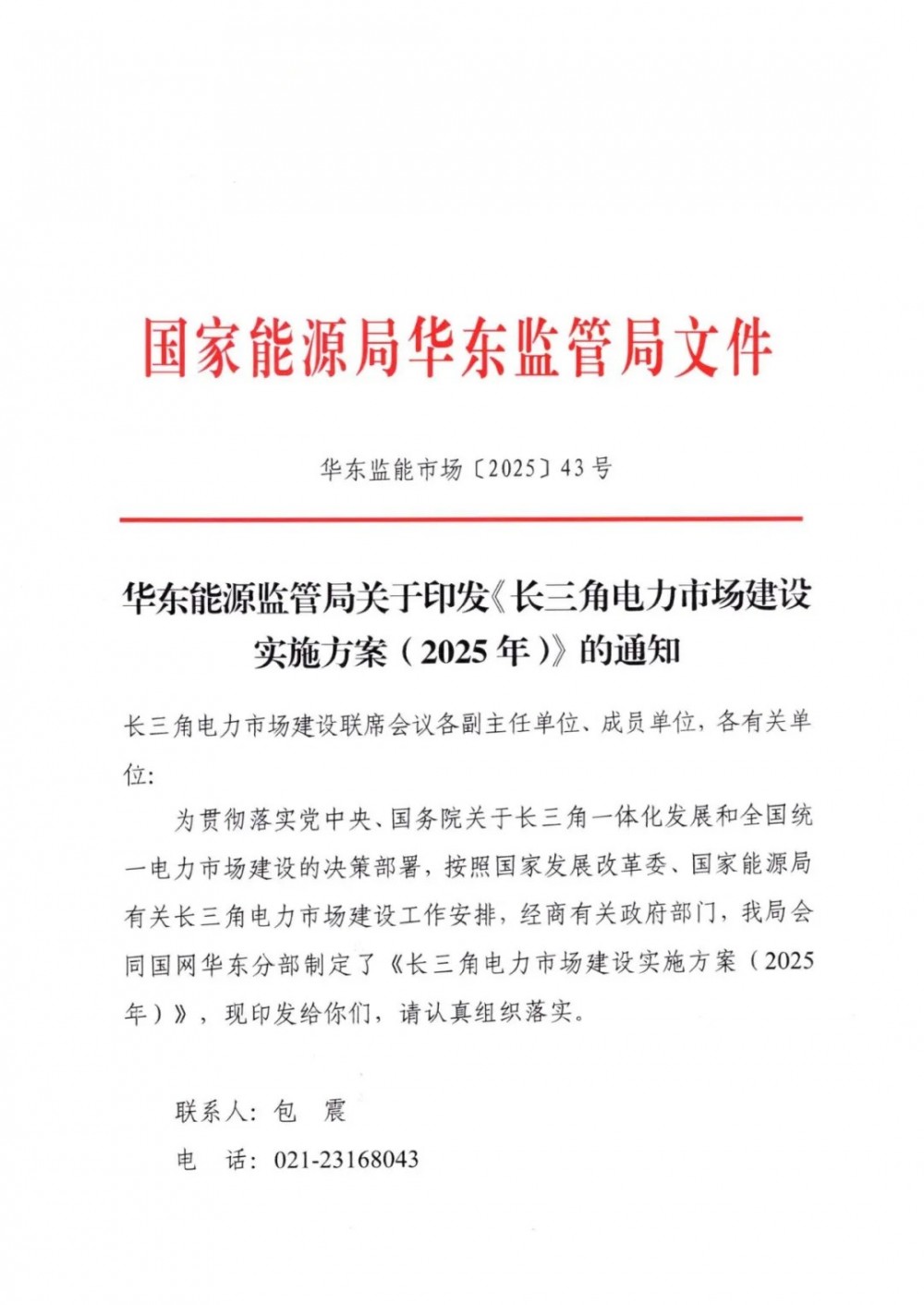 获悉,4月24日,华东能源监管局关于印发《长三角电力市场建设实施方案(2025年)》的通知