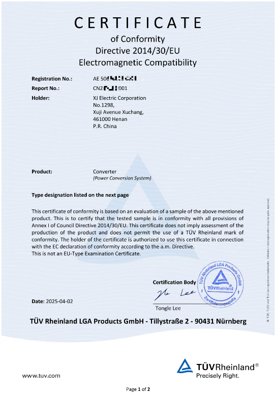 近日,中国电气装备所属许继电气许继电力电子公司自主研发的CBL230-100-EX储能变流器成功通过TUV莱茵权威认证,获得Mark认证证书和CE证书。 此次认证涵盖EN 62477及EN 61000等标准,标志着许继电气储能变流器产品性能达到国际标准。