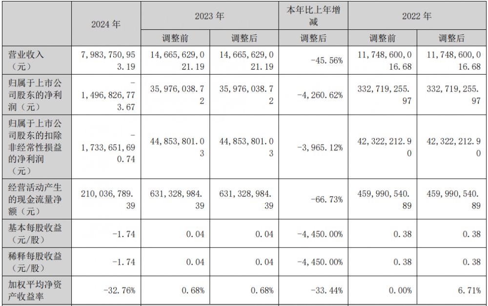 年报数据显示,报告期内,南都电源营业收入79.84亿元,同比下降45.56%。归属于上市公司股东的净利润-14.96亿元,同比下降4,260.62%。