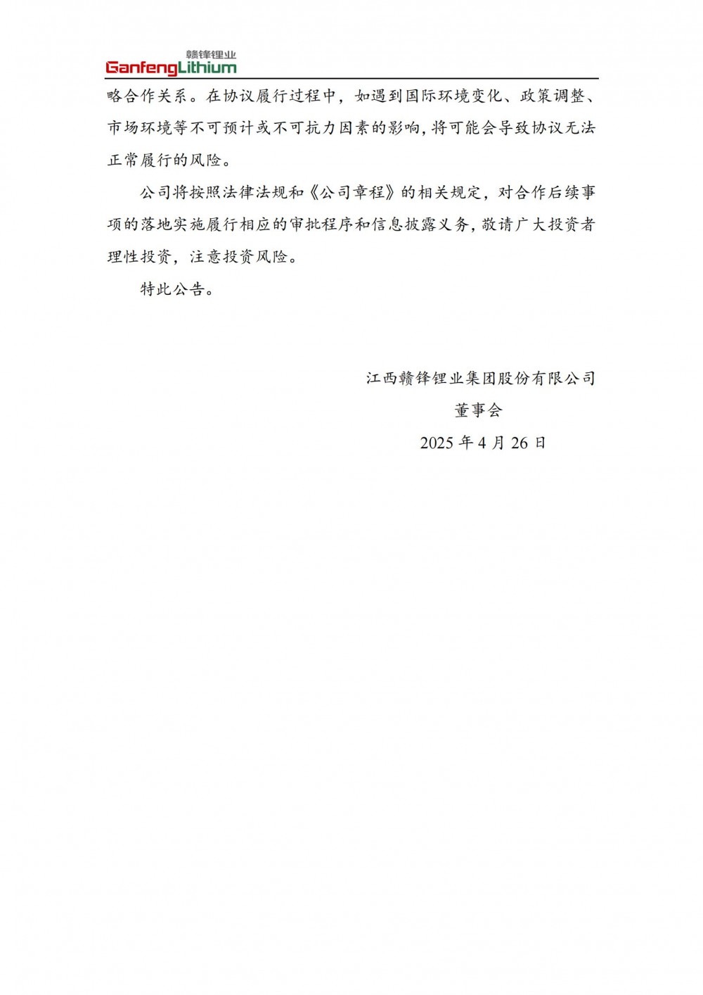 赣锋锂业表示,本次合作协议的签署,旨在三方充分利用地域优势、产业优势、空间优势,发挥各方在新能源领域的技术、人才、管理优势,搭建全方位、多层次、共赢的长期战略合作机制。各方紧紧围绕交通领域电动化、新能源产业拓展、能源供应链拓宽、动力电池综合循环利用等领域,构建绿色能源体系。有利于完善公司产业链布局,提高公司核心竞争力和盈利能力,符合公司上下游一体化的发展战略。本协议的签署预计对公司当期财务状况和经营成果不构成重大影响。