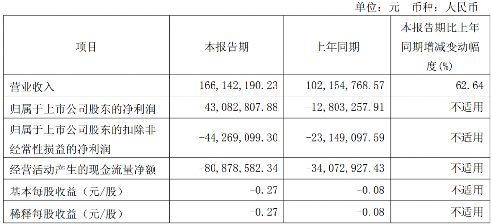 财报数据显示,一季度,华盛锂电实现营收1.66亿元,同比增长62.64%;归属上市公司股东净利润亏损4308万元。