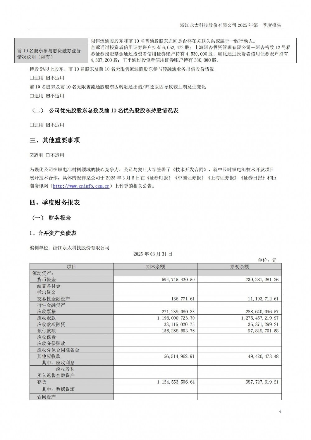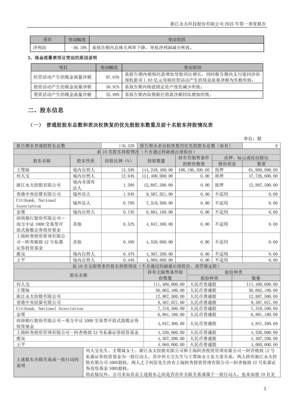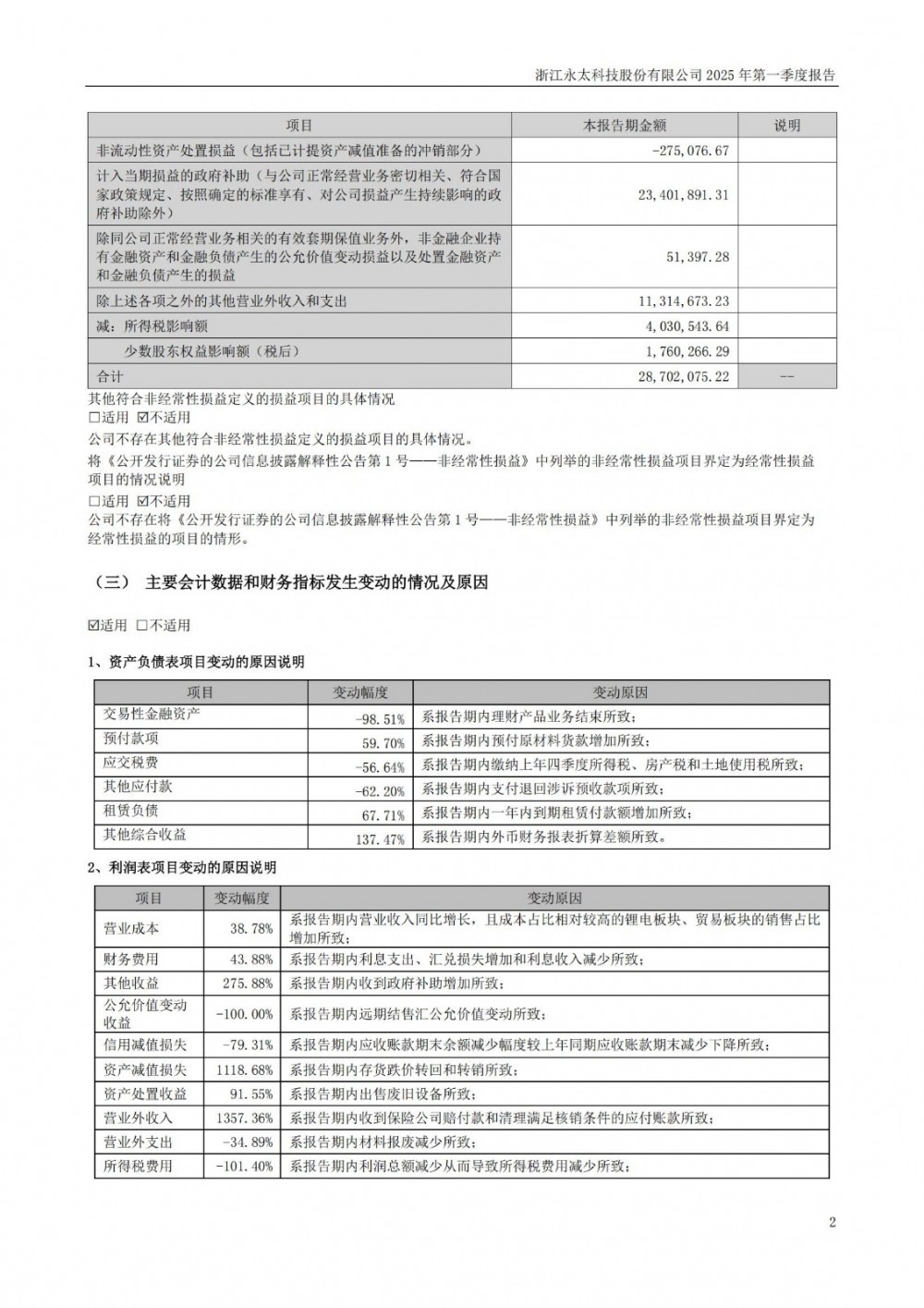 值得注意的的是,永太科技2025年一季度营业成本同比增长38.78%,系报告期内营业收入同比增长,且成本占比相对较高的锂电板块、贸易板块的销售占比增加所致。