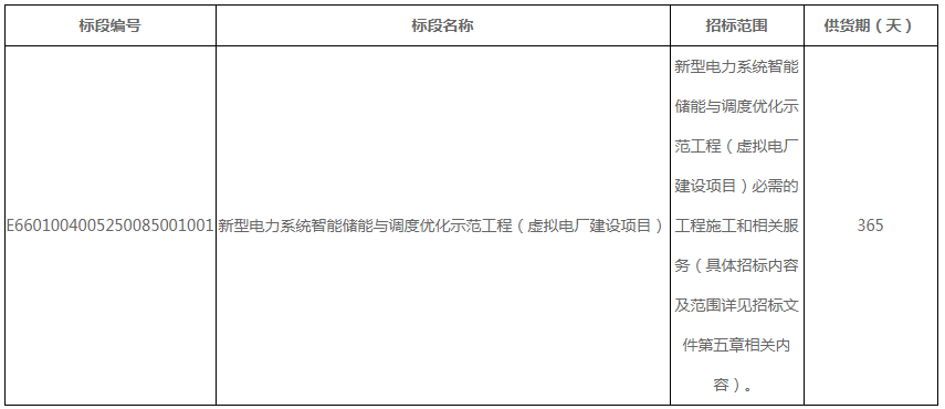 新型电力系统智能储能与调度优化示范工程(虚拟电厂建设项目) 招标公告