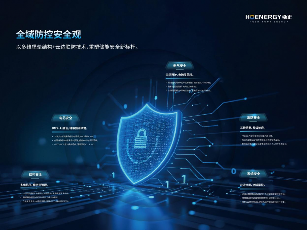 作为业内首批坚定走3S全栈自研路线的储能企业,弘正储能将“预测为主,防消结合”安全理念深植于技术底层,依托BMS、PCS、EMS核心部件到系统集成的全链路自主掌控能力,构建起覆盖技术研发、产品设计、生产制造与场景应用的「全域防控安全观」,实现电芯级实时追踪、模组级动态平衡、系统级联防联控,在保障系统可靠性的同时,通过能效优化与全生命周期价值管理,达成安全防护与运营效益的动态平衡。