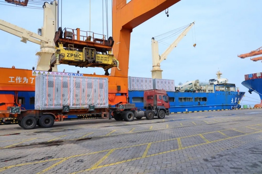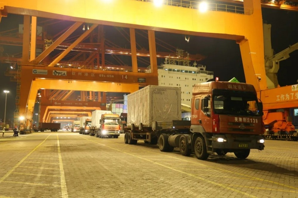面对超重危险品运输的挑战,在陆运环节,特运联合广西交通厅、北部湾港集团创新实施“综合交通+新能源”(大容量储能电池运输保障)试点工作方案,通过25台备案车辆“专车专用”,采用“厂港直通”模式,实现工厂提货与船舶到港计划的无缝衔接,满足了项目货物快速集港的要求。
