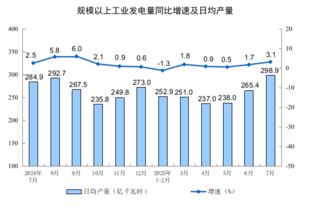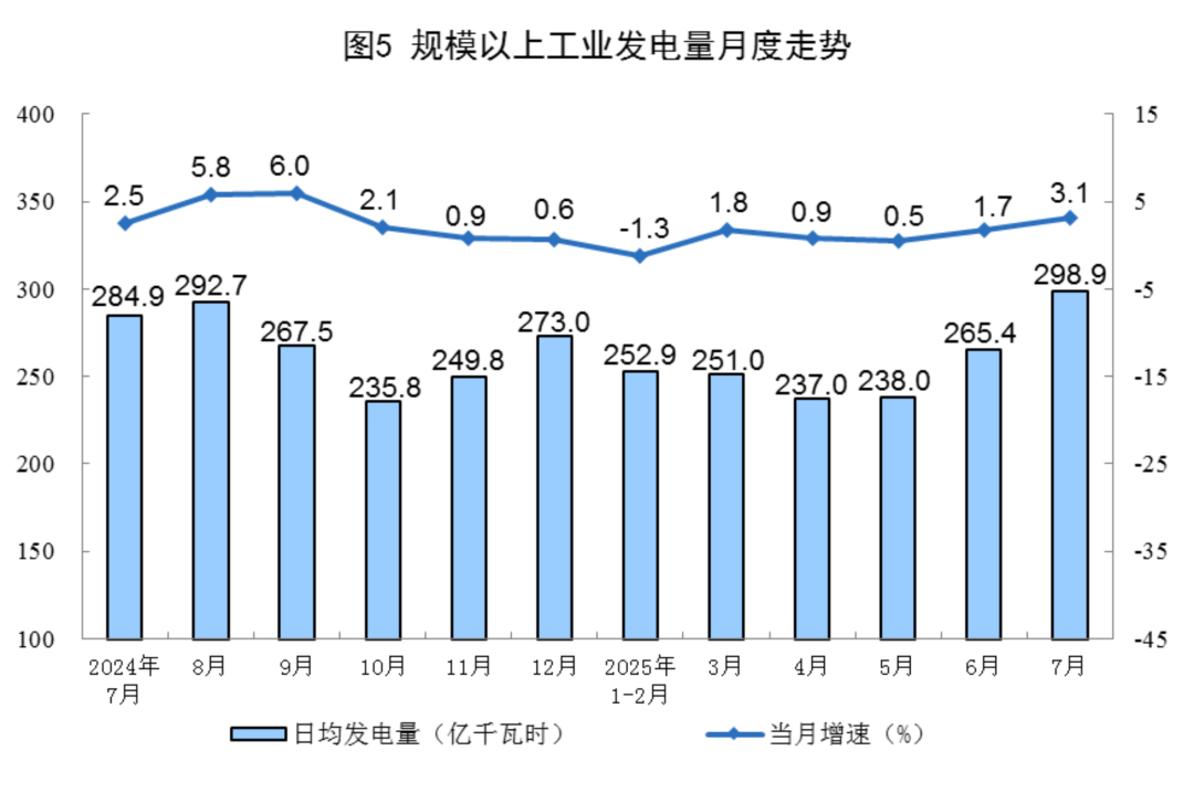 电力家获悉,8月15日,国家统计局发布《2025年7月份能源生产情况》和《2025年7月份规模以上工业增加值增长5.7%》。