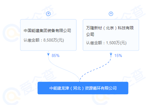 股权穿透图显示,该企业由中国能建集团装备有限公司和万隆新材(北京)科技有限公司共同持股。其中,中国能建集团装备有限公司持股85%。