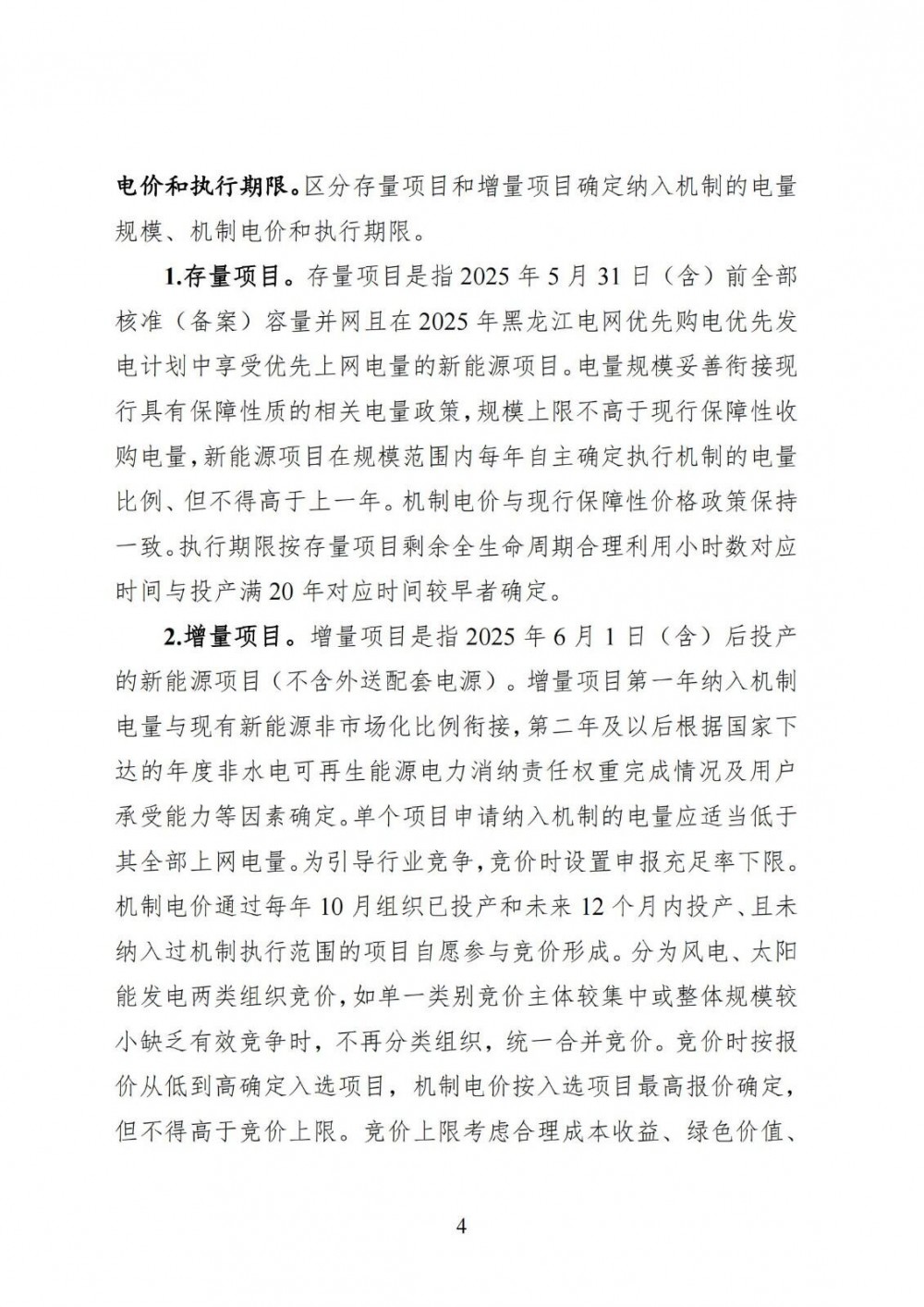 项目范围:2025年5月31日(含)前全部核准(备案)容量并网且在2025年黑龙江电网优先购电优先发电计划中享受优先上网电量的新能源项目。