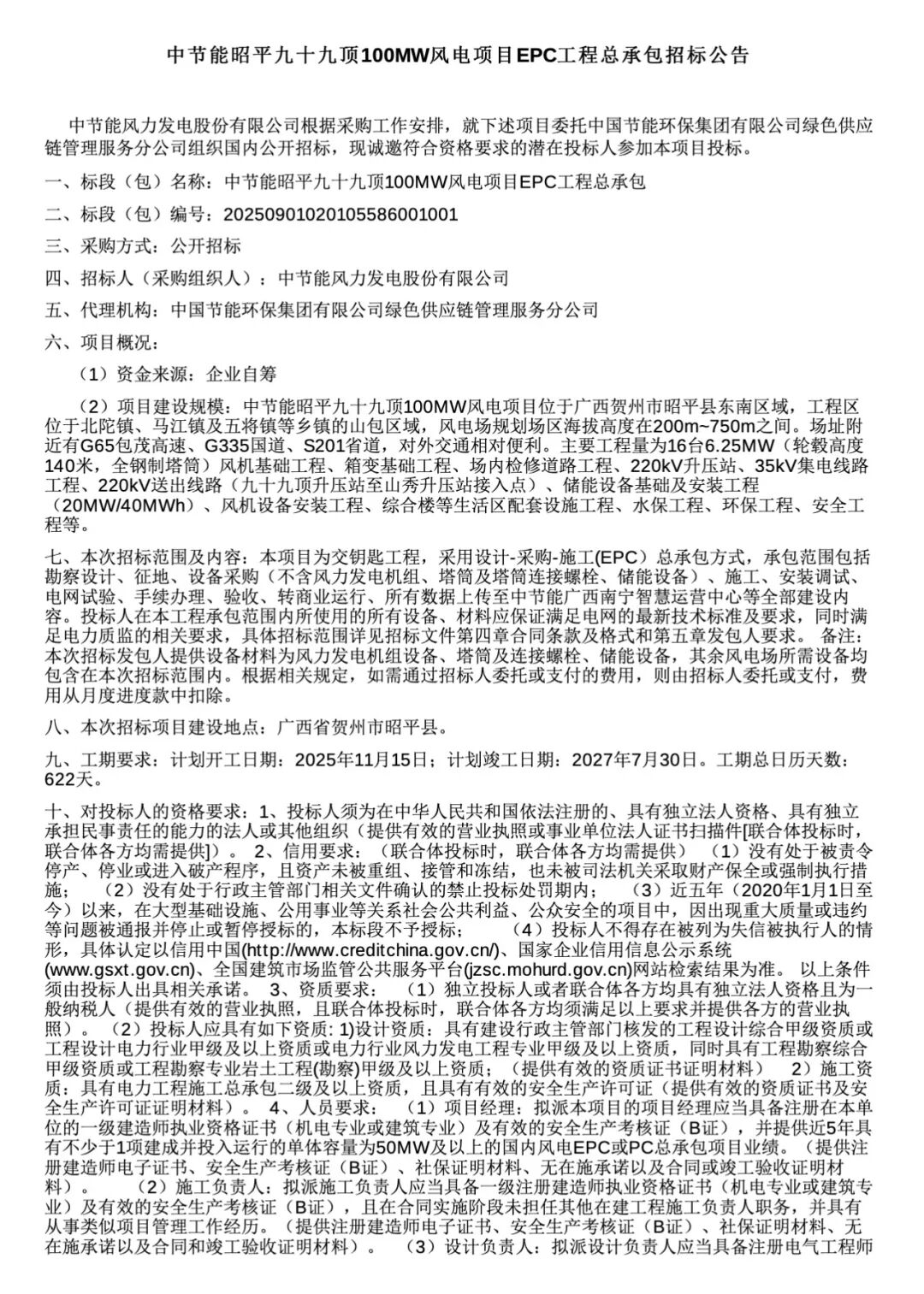 电力家获悉,9月25日-26日,中国招标投标电子商务平台发布了6个风电EPC招标信息。6个项目合计规模1092.5MW,涉及风机数量142台,风机单机规模从5MW-10MW之间。