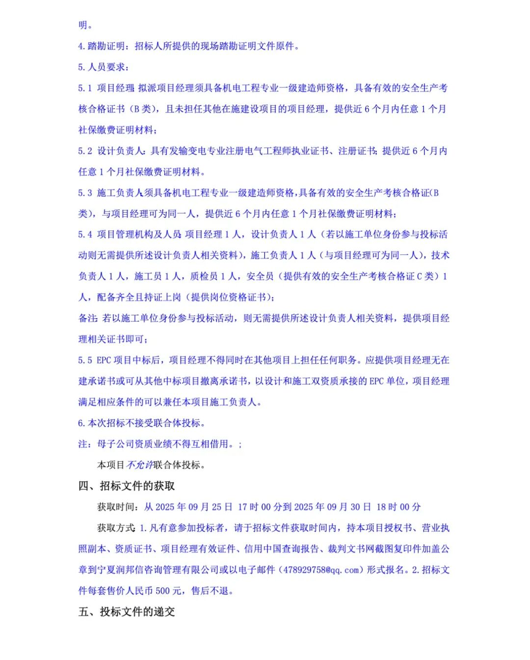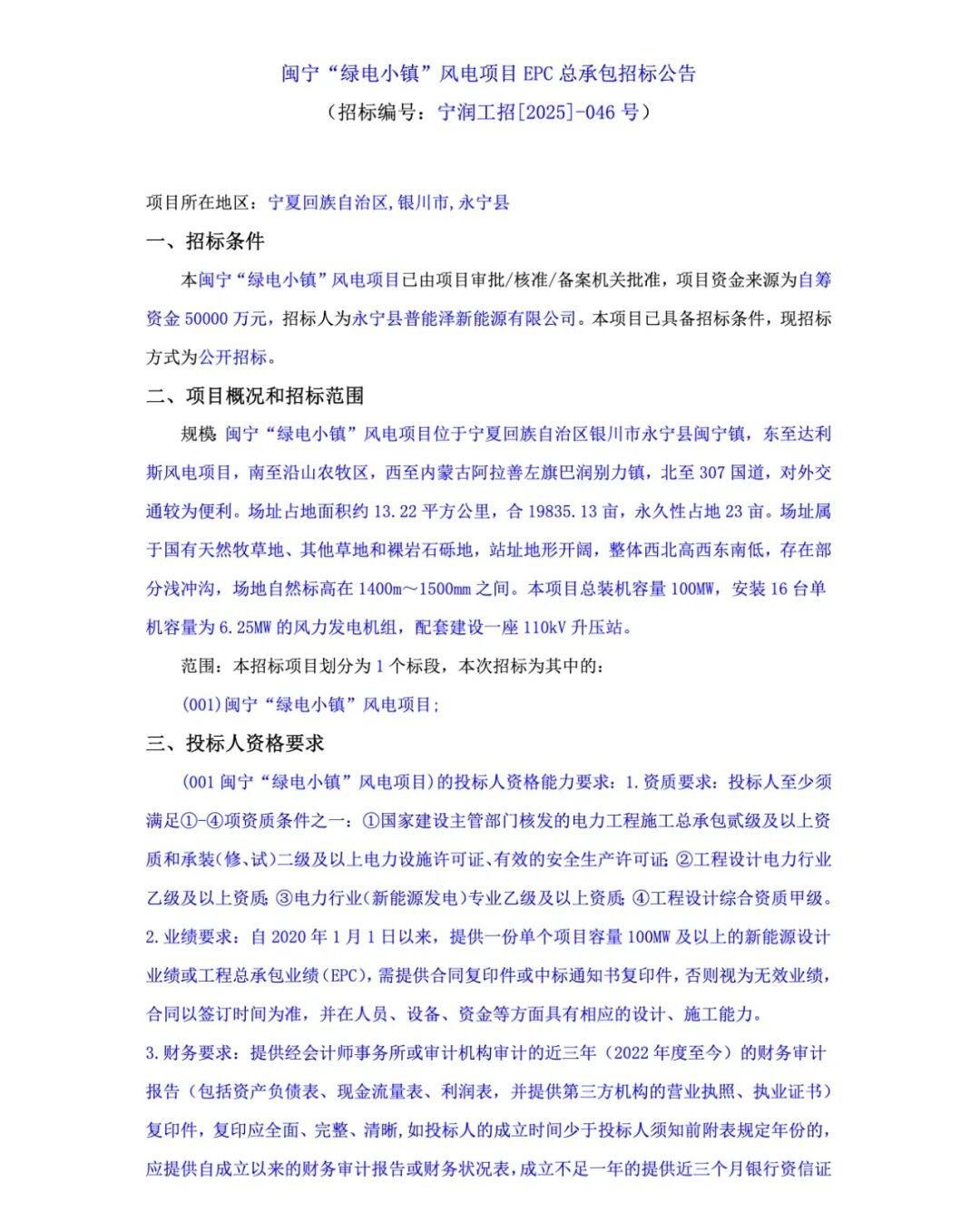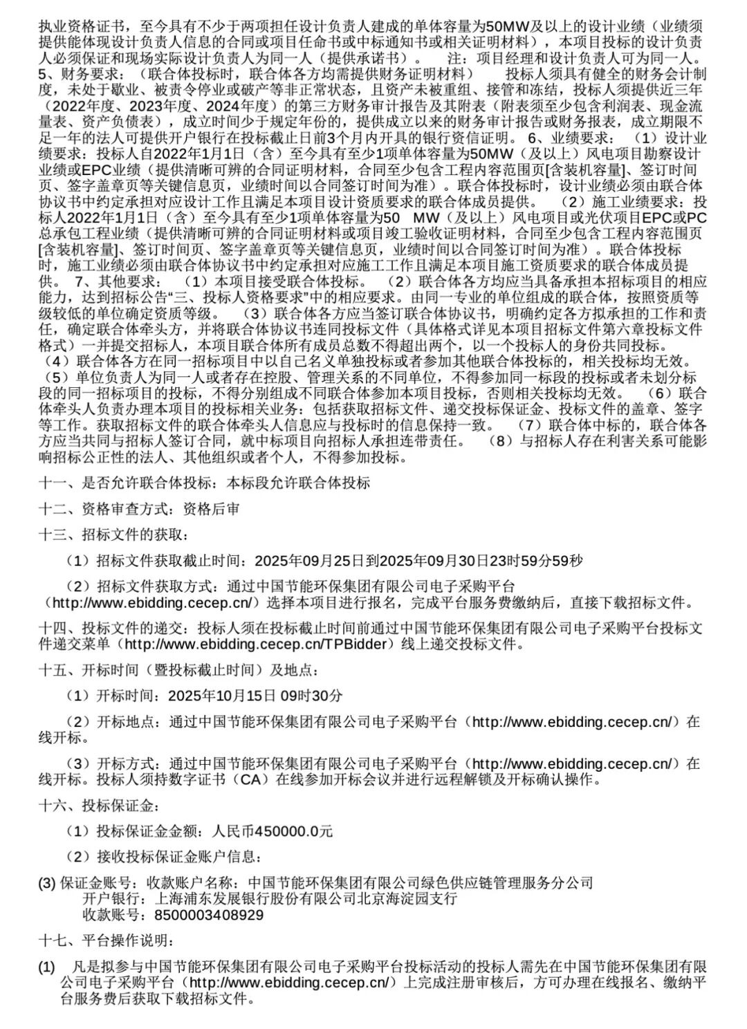 6个项目中,有4个项目允许联合体中标,只有蛟河市白石山镇中深层地热供暖示范项目及配套135兆瓦风电项目EPC总承包工程和闽宁““绿电小镇”风电项目EPC总承包招标不允许联合体中标。