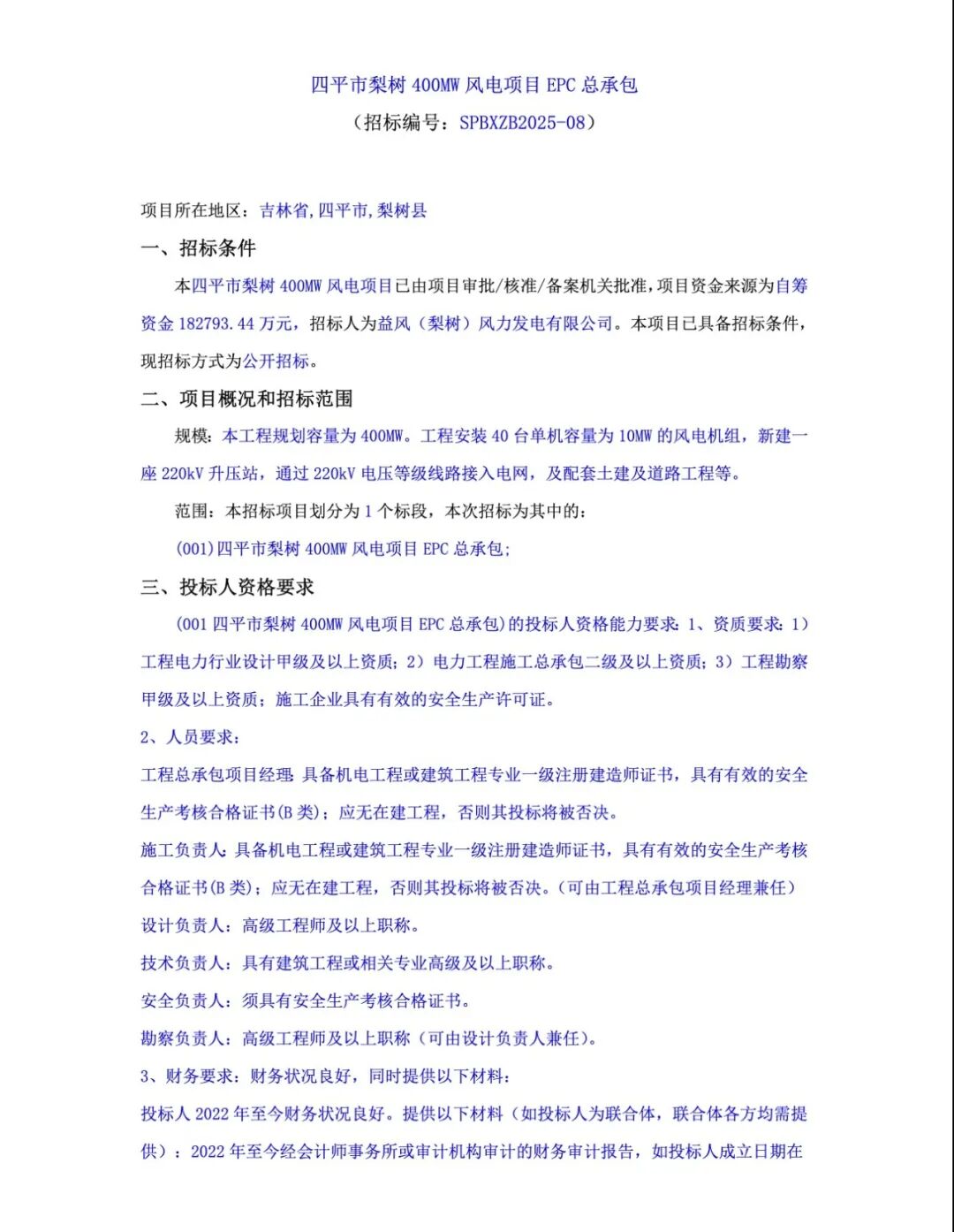 项目招标单机规模最大的也是吉林四平的项目,40台风机,每台单机规模都是10MW。