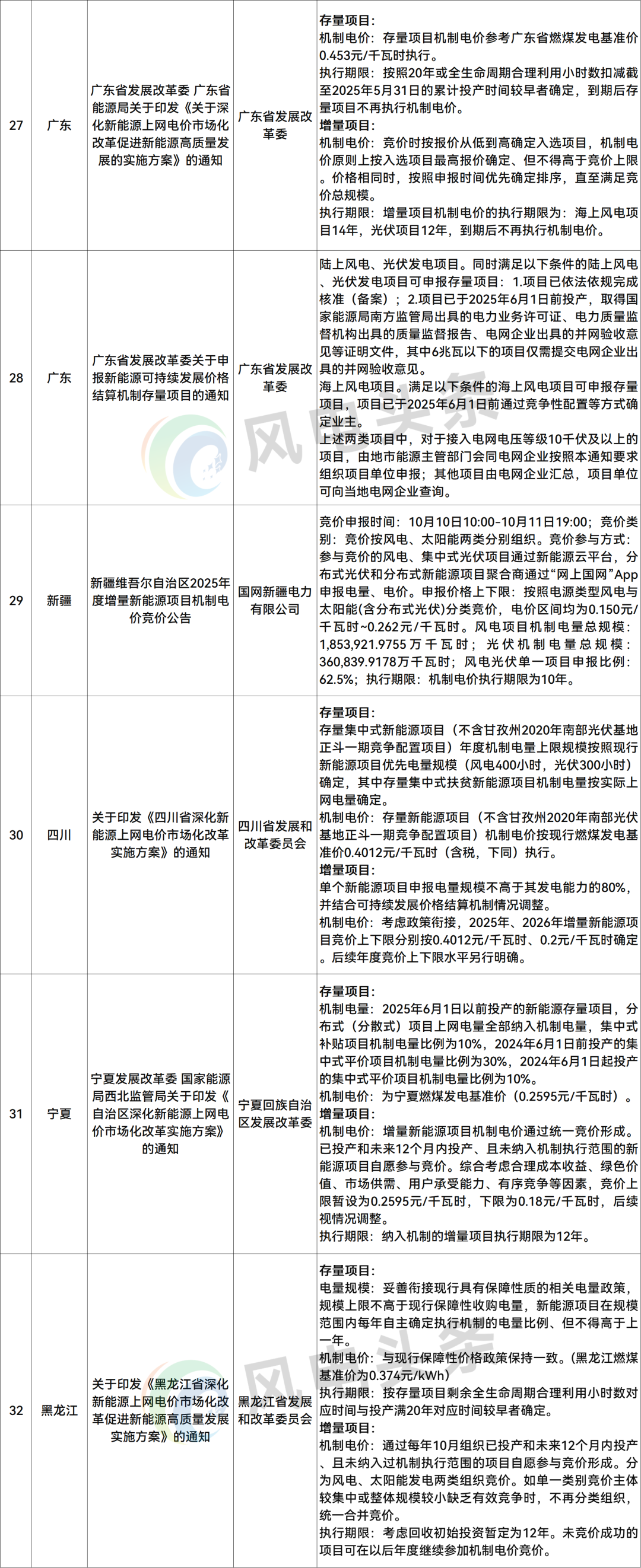 9月份值得注意的是,在风电建设方案/竞争性配置方面,河北下达2025年风电、光伏发电年度开发建设方案第二批项目,共76个、727.107万千瓦,其中风电项目414.2万千瓦,光伏项目312.907万千瓦。贵州下达大方县八堡新开风电场等11个风电光伏发电项目建设计划,规模总计1.35GW,其中,光伏300MW,风电1050MW,项目业主涉及贵州能源集团、华电。