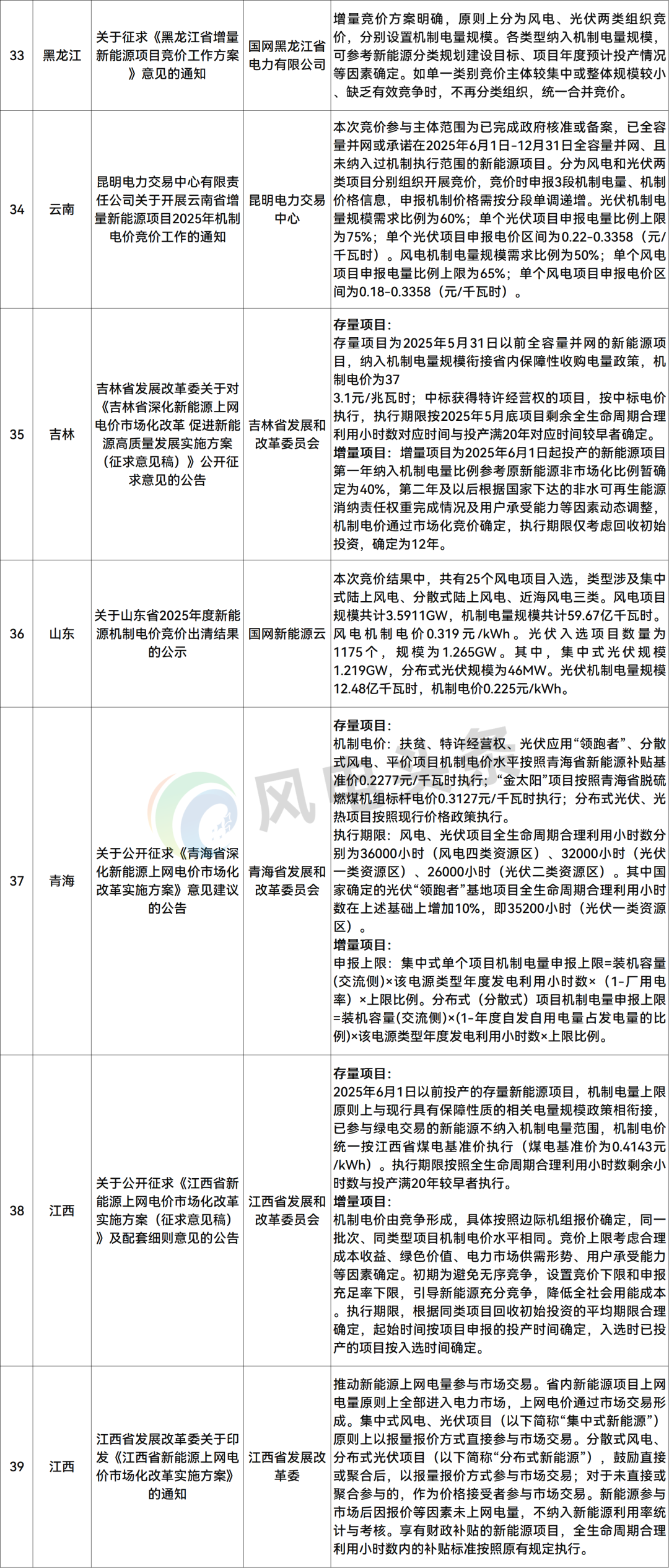 在其他政策方面,山西发布关于做好2025年分布式可再生能源发展有关工作的通知,绿色区域分布式电源承载力合计为401.3万千瓦,围绕各项行动计划提出的发展路径和试点方向,尤其在“千家万户沐光行动”和“交通运输与能源融合”等方面积极探索,组织申报分布式可再生能源项目。
