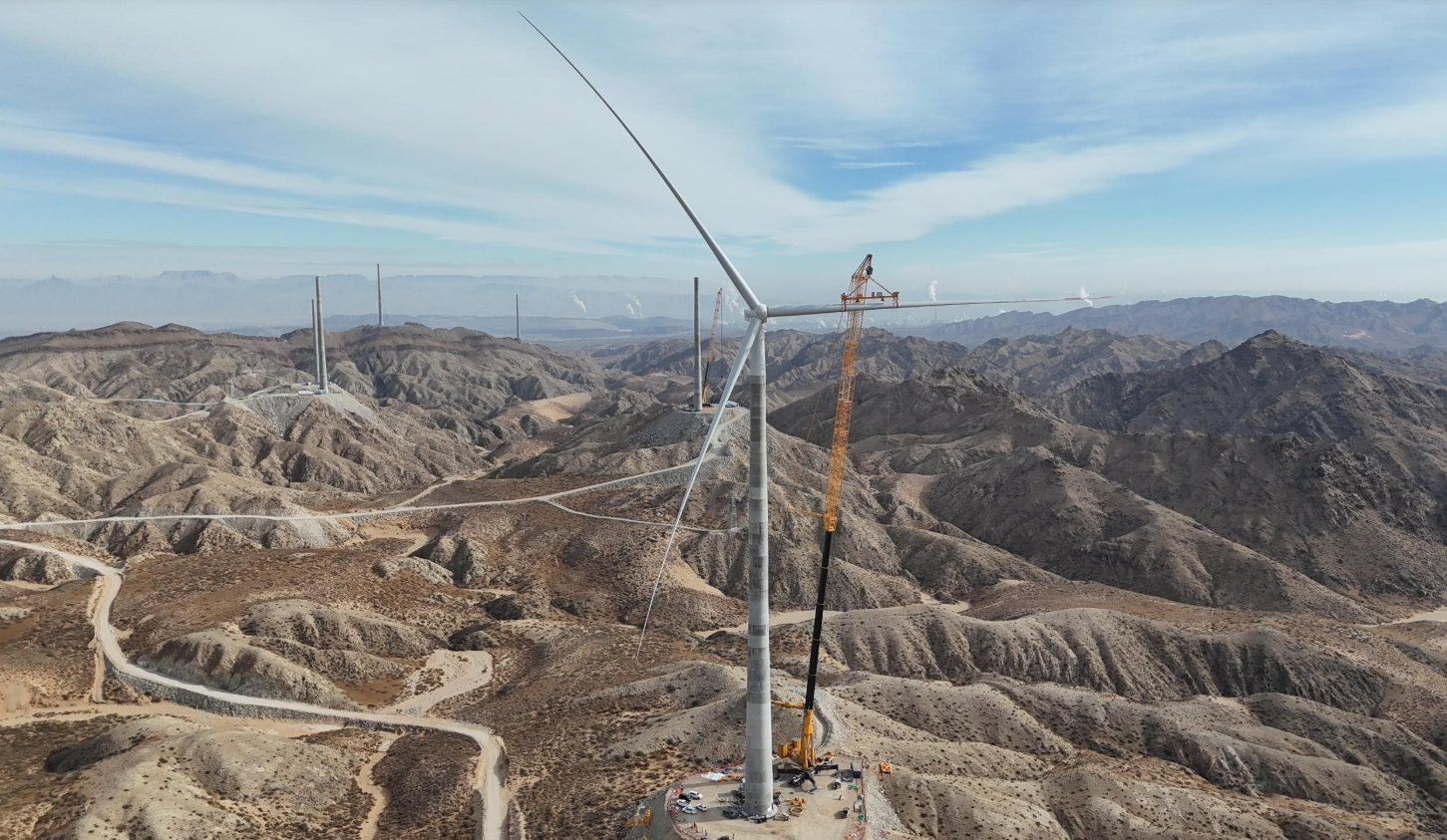 【中国网】160米混塔风机矗立阿拉善 内蒙古清洁能源项目再添新地标