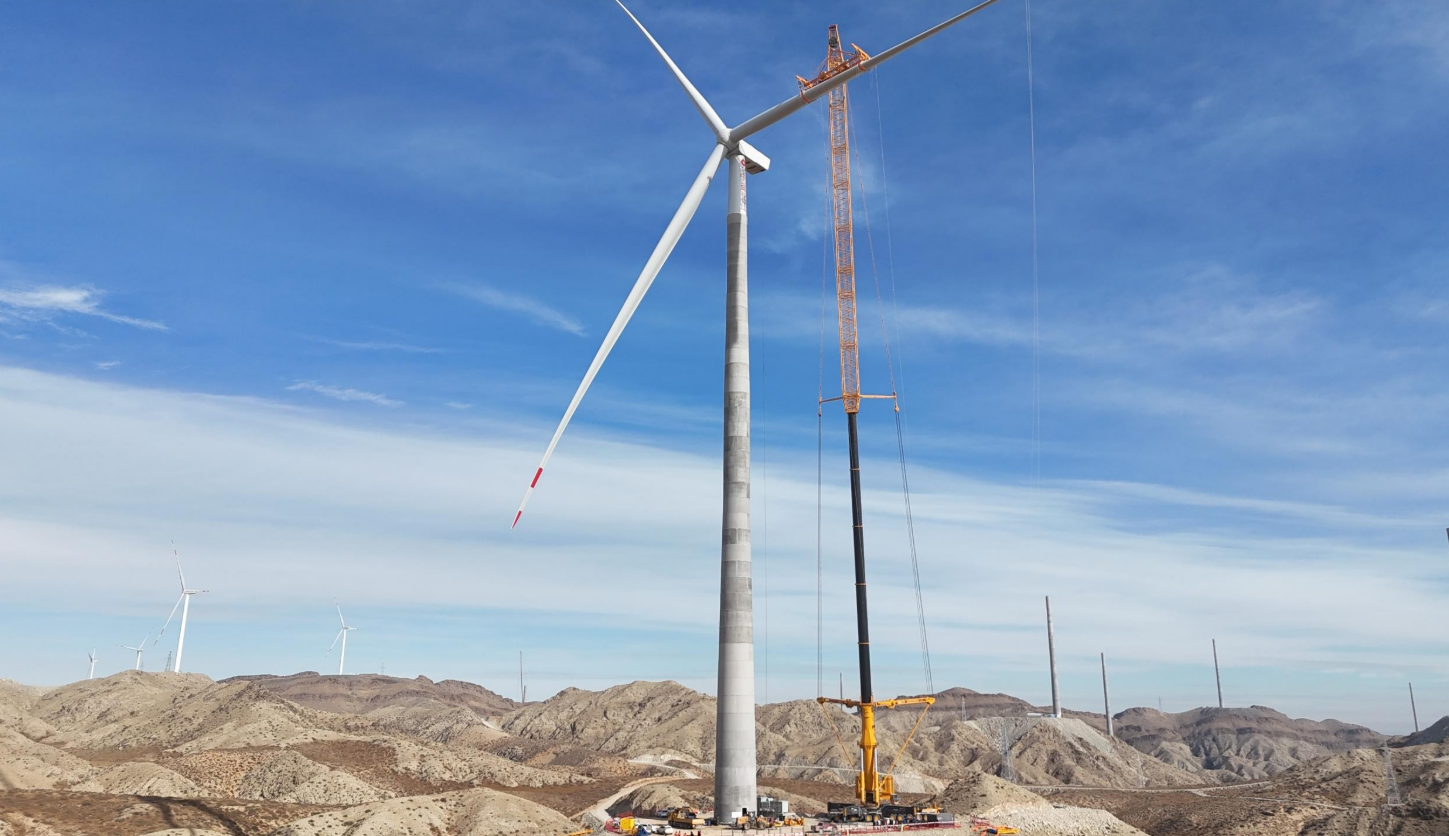 12月2日,由中国能建葛洲坝一公司建设的内蒙古阿拉善中盐75兆瓦风电项目首台混塔风机吊装工作圆满落幕。这台轮毂中心高度达160米的混塔风机,是项目建设的关键节点成果,刷新了内蒙古清洁能源发展新地标。