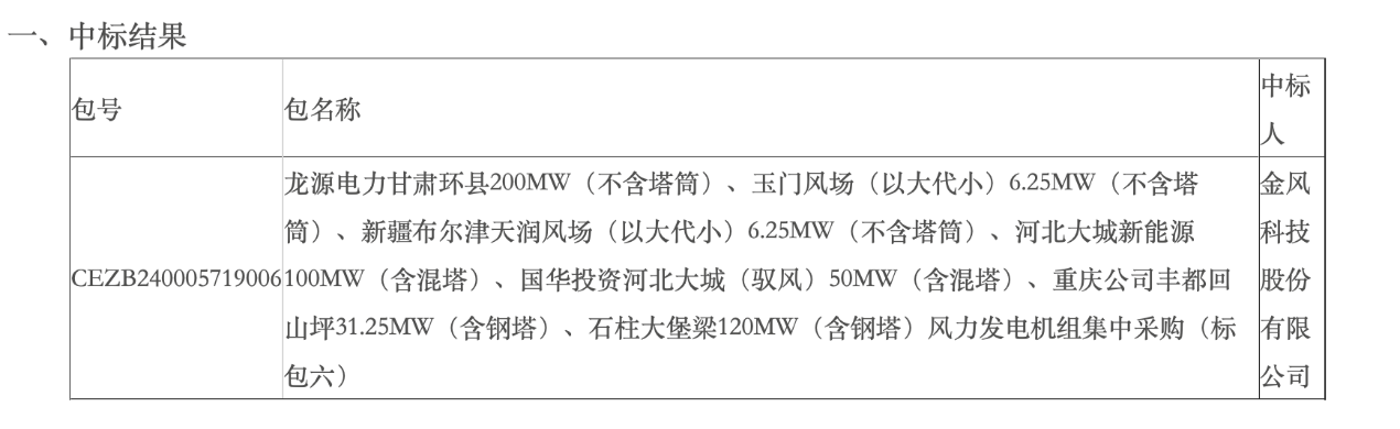 国家能源集团2024年第二批2503.75MW风力发电机组集团级集中采购公开招标中标结果公告