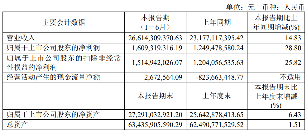 报告披露,1-6月,亨通光电实现营业收入266.14亿元,同比增长14.83%;实现归属于上市公司股东的净利润16.09亿元,同比增长28.80%;实现归属于上市公司股东的扣除非经常性损益的净利润15.15亿元,同比增长25.82%。