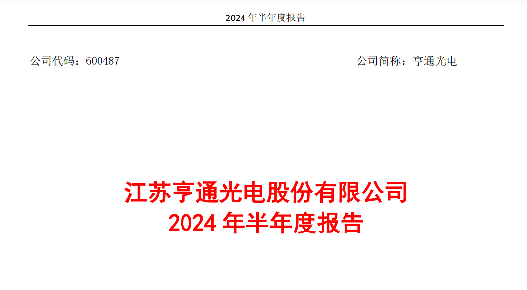 8月29日,江苏亨通光电股份有限公司(以下简称亨通光电或公司)发布《2024年半年度报告》。