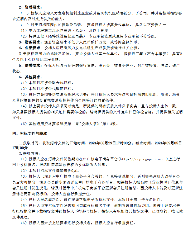 华能、中广核1324.5MW风电项目启动机组采购招标!