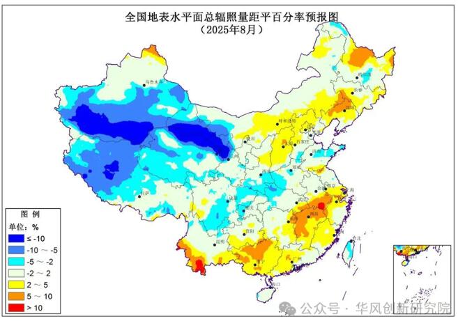 图2.2 2025年8月平均水平面总辐照量距平百分率预报