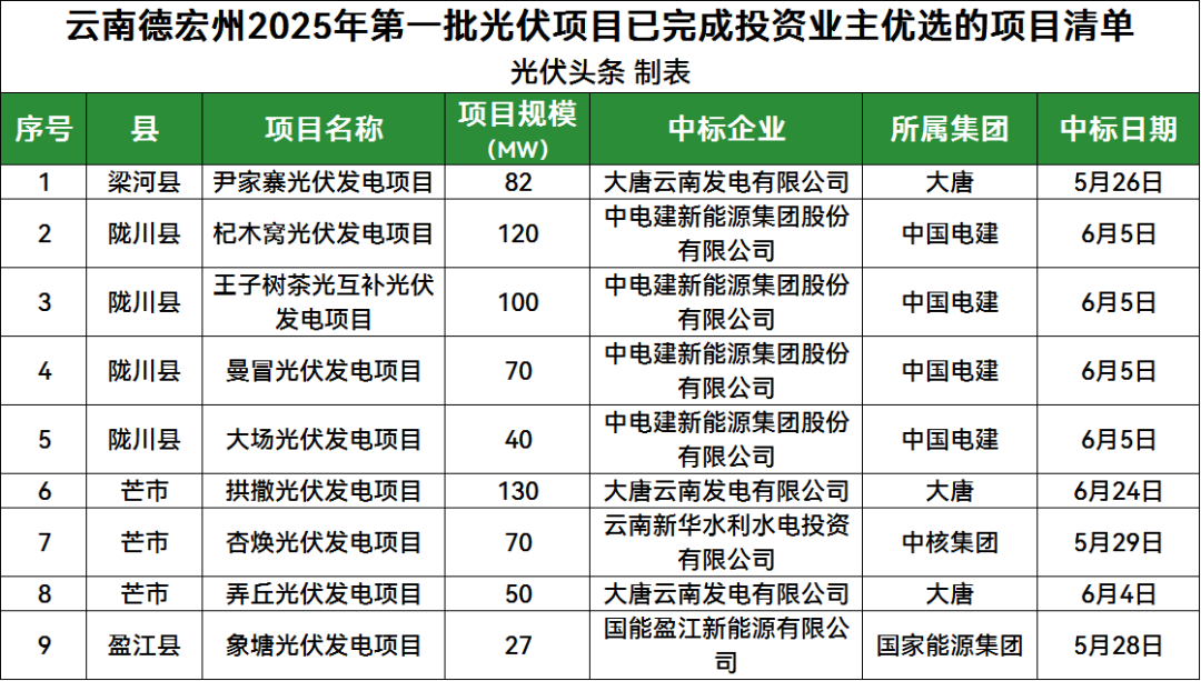 近期,云南省各地陆续公布2025年第一批光伏项目投资主体优选结果。
