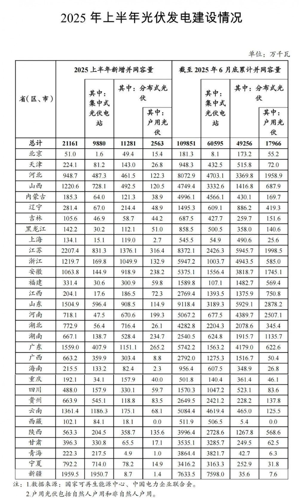 8月2日,国家能源局发布2025年上半年光伏发电建设情况。光伏头条据此梳理出2025年上半年分省十大光伏装机排行榜。