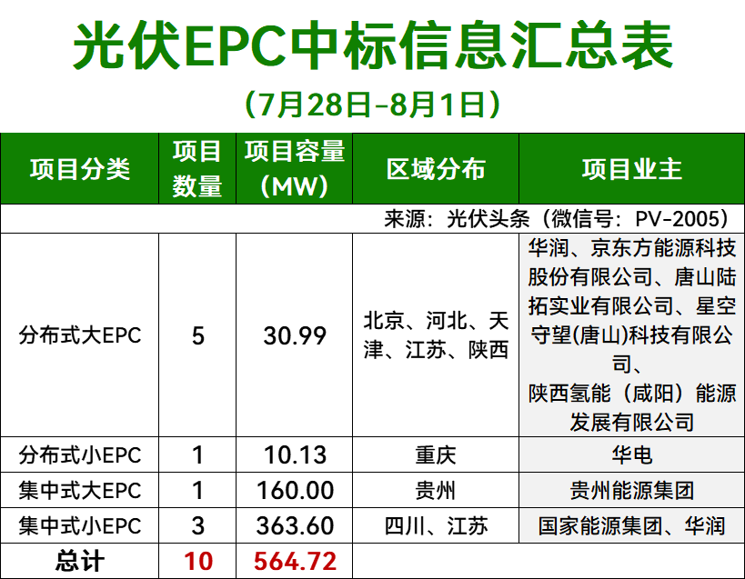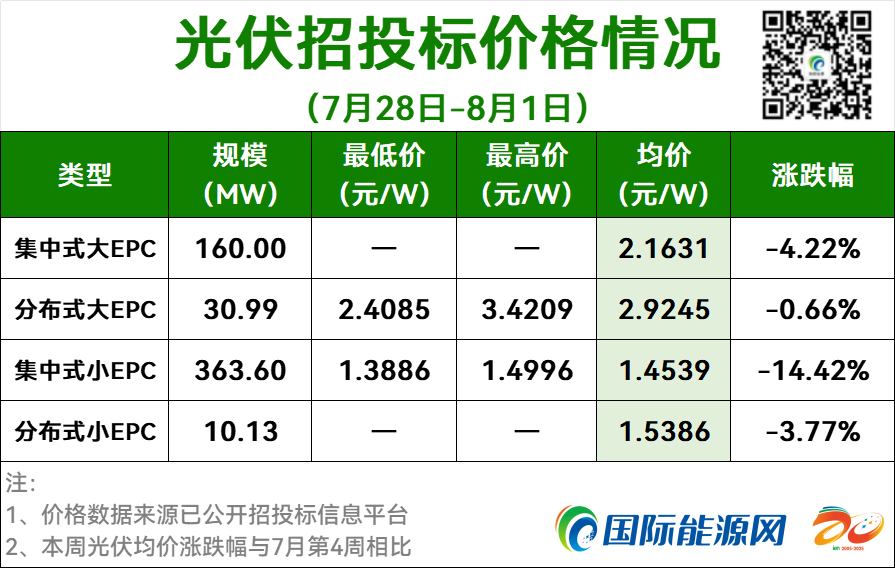 光伏头条根据7月28日至8月1日光伏EPC市场情况,精选展示最高价以及最低价项目。