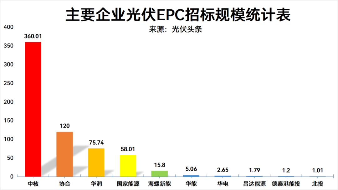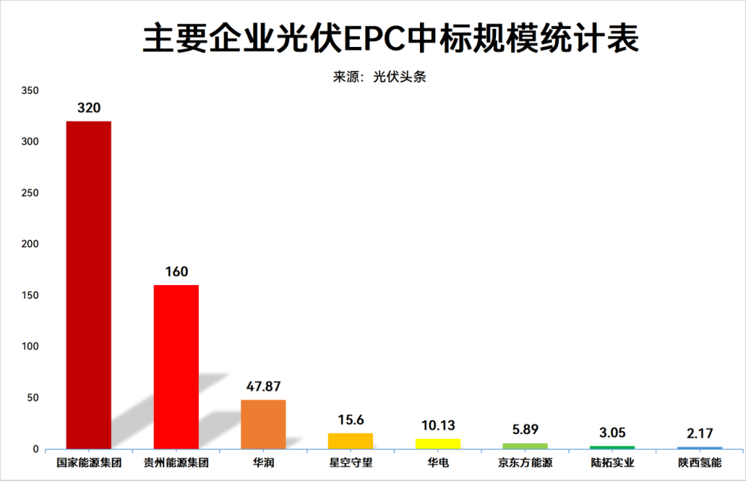 光伏头条根据公开信息统计,中标方面,本周国家能源集团、贵州能源集团、华润、星空守望(唐山)科技有限公司、华电、京东方能源科技股份有限公司、唐山陆拓实业有限公司、陕西氢能(咸阳)能源发展有限公司等企业发布了10个中标项目,总规模564.72MW。其中,国家能源集团以320MW排名第一,贵州能源集团以160MW排名第二,华润以47.87MW位列第三。