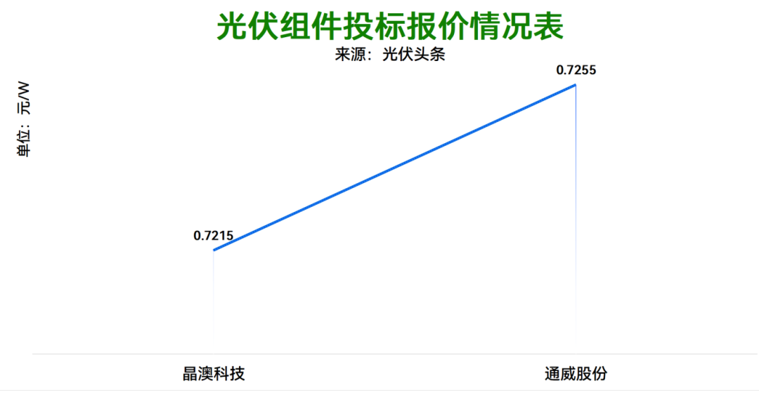 本周光伏组件中标项目有明确中标价格规模为50.00879MW,其中最高价为0.7255元/W,最低价为0.7215元/W。