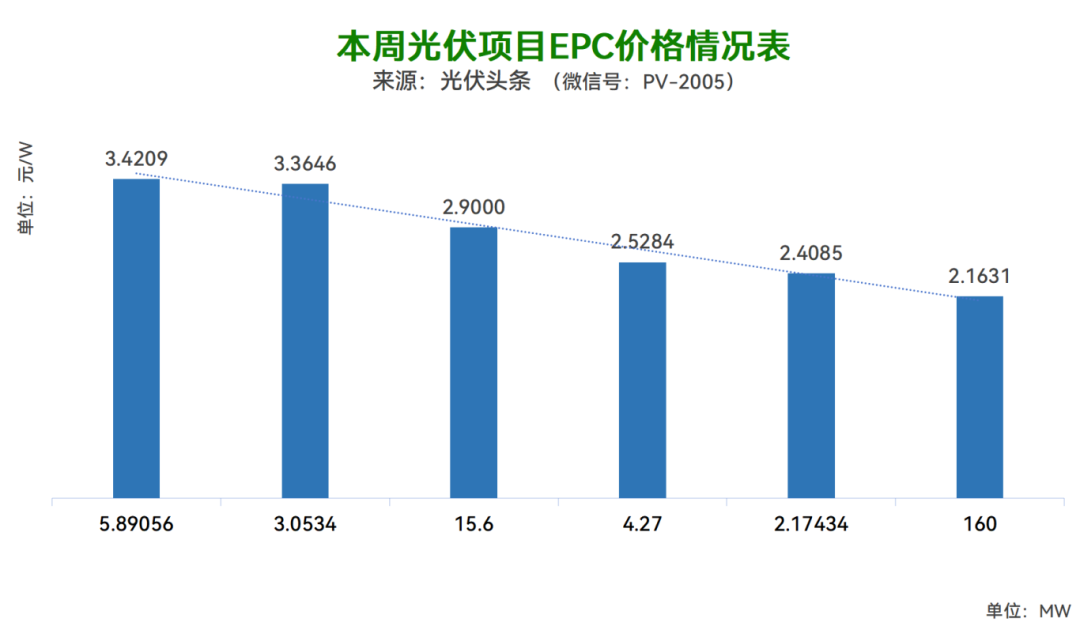本周分布式大EPC均价为2.9245元/W,集中式大EPC价格为2.1631元/W。