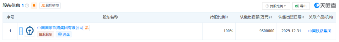 股东信息显示,该公司由中国国家铁路集团有限公司全资持股。