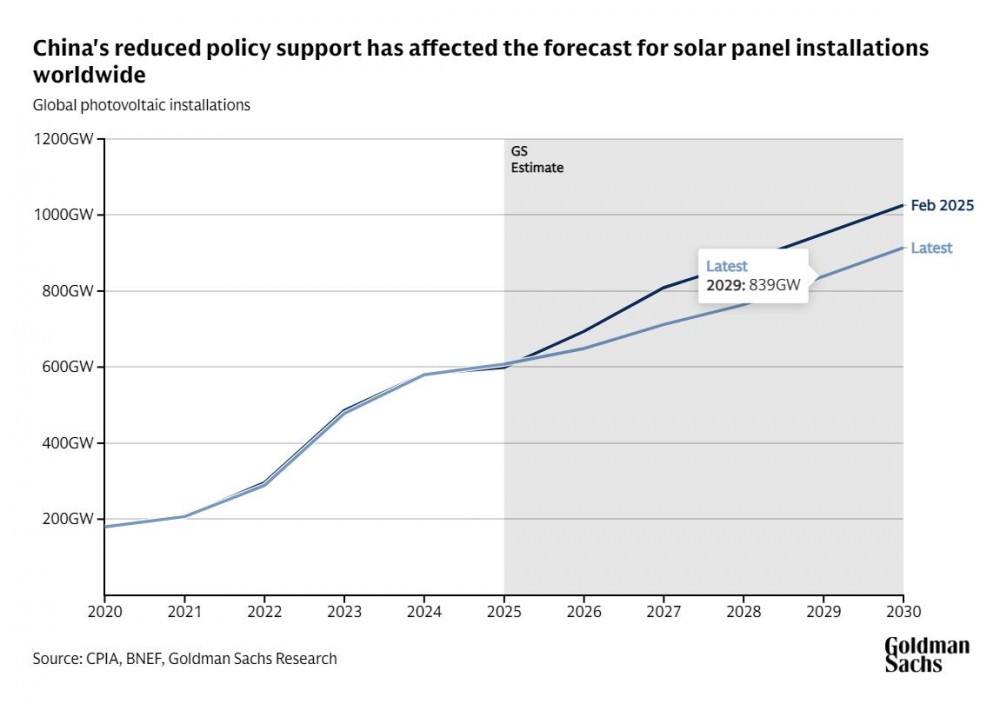 近日,高盛发布报告称,预计全球行业仍将快速增长,到2030年全球太阳能装机容量将增至914GW,比2024年的水平高出57%。