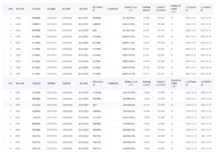电力家获悉,12月12日,国网新能源云公示四川省机制电价竞价结果。