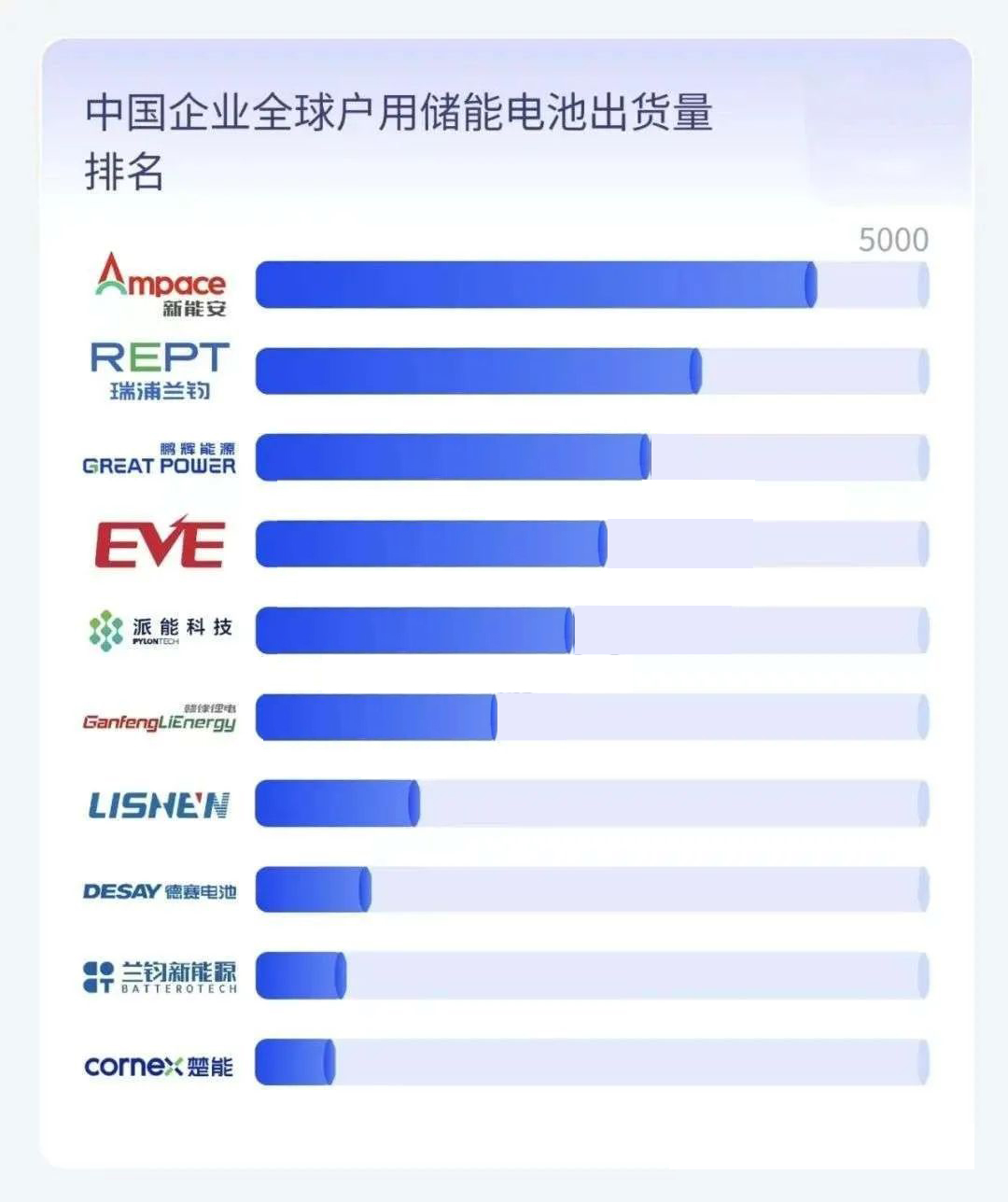 (4)中国企业全球用户侧储能系统解决方案提供商的出货量约为8.31GWh;