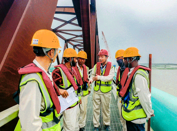 其中桥梁段的管道和胀力弯施工是项目的重点和难点,项目部深化设计方案,确定最佳施工方案,采取局部疏浚、浮船吊艏艉抛八字锚、模块预制等方法,克服了河床上升、水位及流速暴涨、多方交叉施工等多种不利条件,节约了工期和成本,圆满完成节点目标,受到了业主GTCL公司及印度DORSCH监理公司的高度赞扬,展现了陕建安装集团海外建造的综合实力。