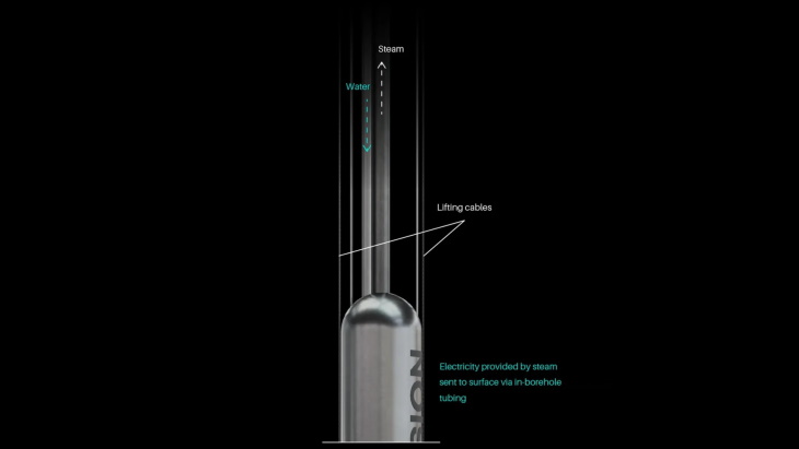 Deep Fission 计划在地下约一英里(1.6 公里)处的一个 30 英寸深的钻孔中安装 15 MWe 压水反应堆 (PWR)。该反应堆的运行压力(160 个大气压)与标准 PWR 相同,核心温度也相同(约 315C)。与标准 PWR 一样,热量被传输到深处的蒸汽发生器中以将水煮沸,非放射性蒸汽迅速上升到地面,标准蒸汽涡轮机将能量转化为电能。