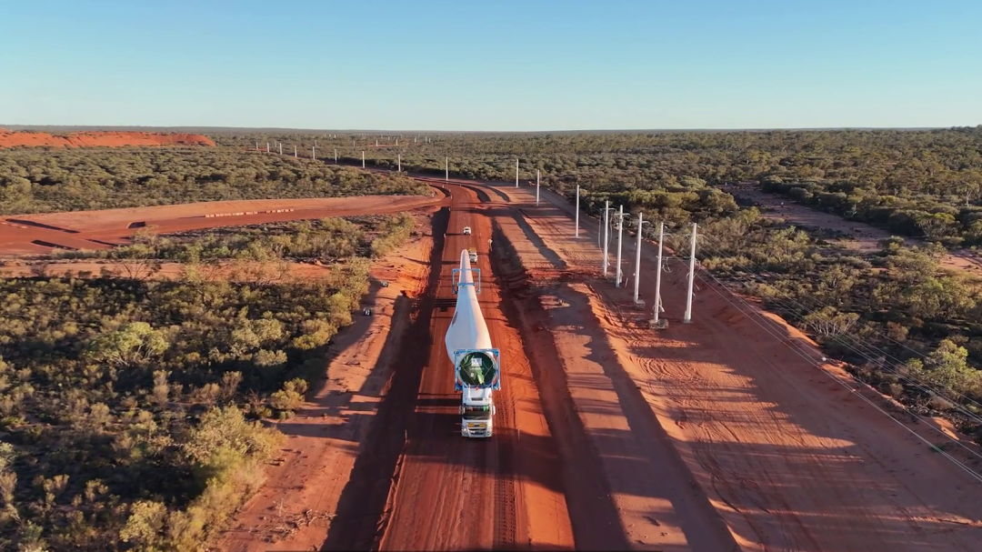 近日,金风科技与太平洋能源(Pacific Energy)合作,为澳大利亚AngloGold Ashanti公司和Regis Resources Ltd公司的Tropicana可再生能源项目成功完成了风电设备交付,此次机组运输的陆上起点为澳大利亚杰拉尔顿港,距离项目现场的运输路线长达1444公里,刷新了澳洲风电设备运输距离最远纪录。