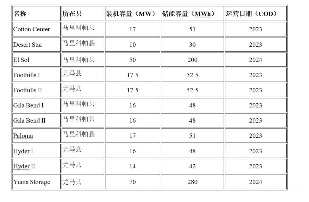 Invenergy公司运营所有储能项目都位于亚利桑那州马里科帕县和尤马县,并与公用事业厂商亚利桑那州公共服务公司(APS)签署了电力采购协议。