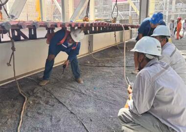 项目部严格按安装工序进行安全技术交底,逐项核对要点。吊装过程中,指挥人员依托对讲系统统一调度,吊车操作员依据方案精准控制起吊速度与角度,全程监测吊物状态。项目部管理人员、业主及监理单位现场联合监督,实时沟通纠偏,确保受热面吊装平稳就位,全程安全可控。