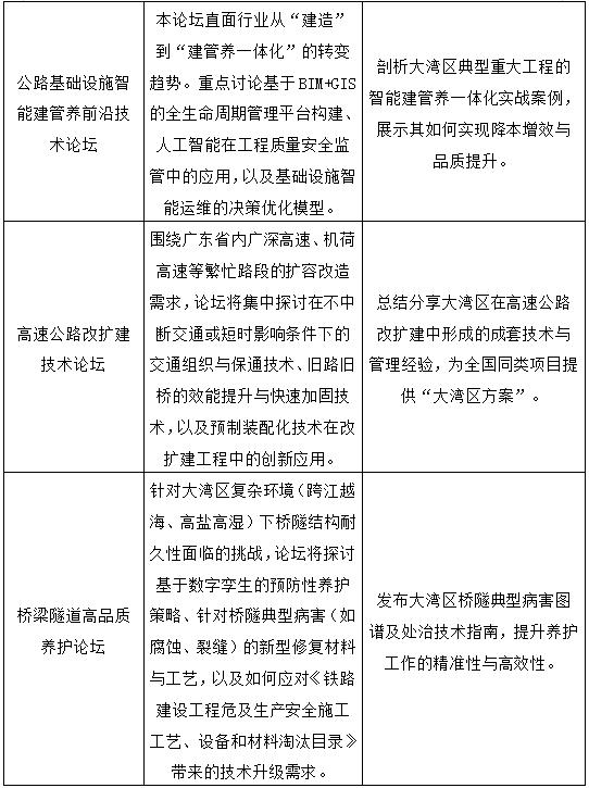 我们诚挚邀请国内外行业机构、科研院所、建设单位、设备制造商、技术服务商等各方代表踊跃参与,共同展示新技术、交流新理念、拓展新合作,携手把握大湾区发展机遇,赋能公路行业迈向更高质量、更有效率、更可持续的未来!