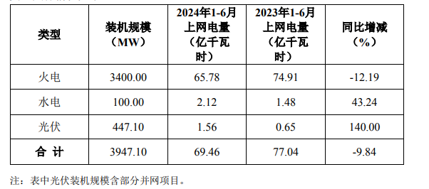 7月12日,赣能股份发布公告称,公司所属电厂2024年半年度实现上网电量69.46亿千瓦时,较上年同期减少9.84%,其中:市场化交易电量66.13亿千瓦时,占上网电量的95.21%。按发电类型具体情况如下:Br>