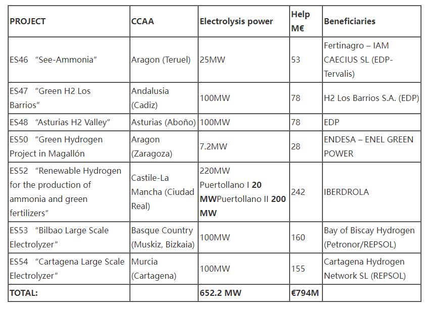 西班牙政府拨款7.94亿欧元用于IPCEI Hy2Use的七项可再生氢工业技术和集群项目。