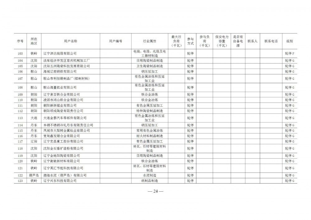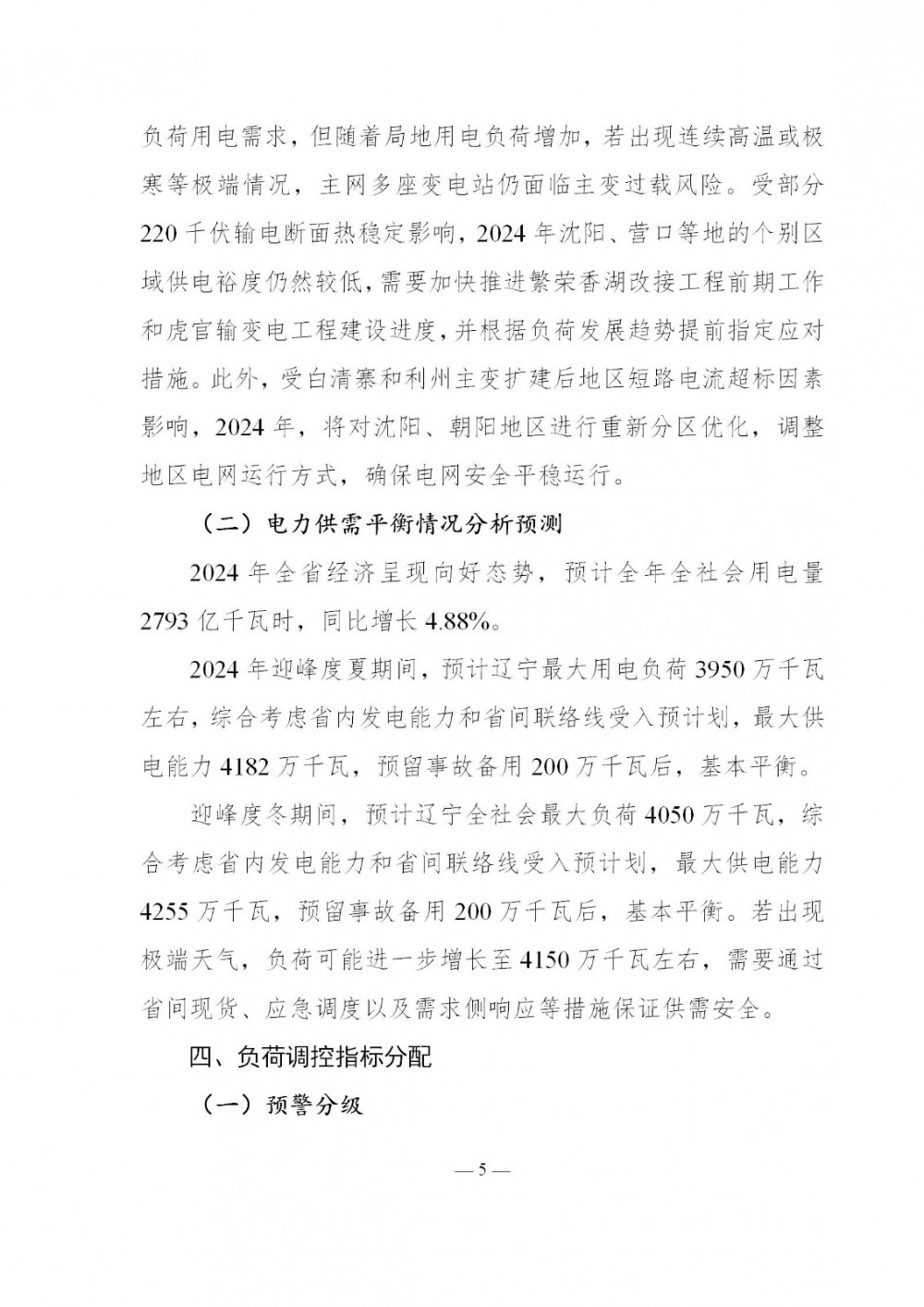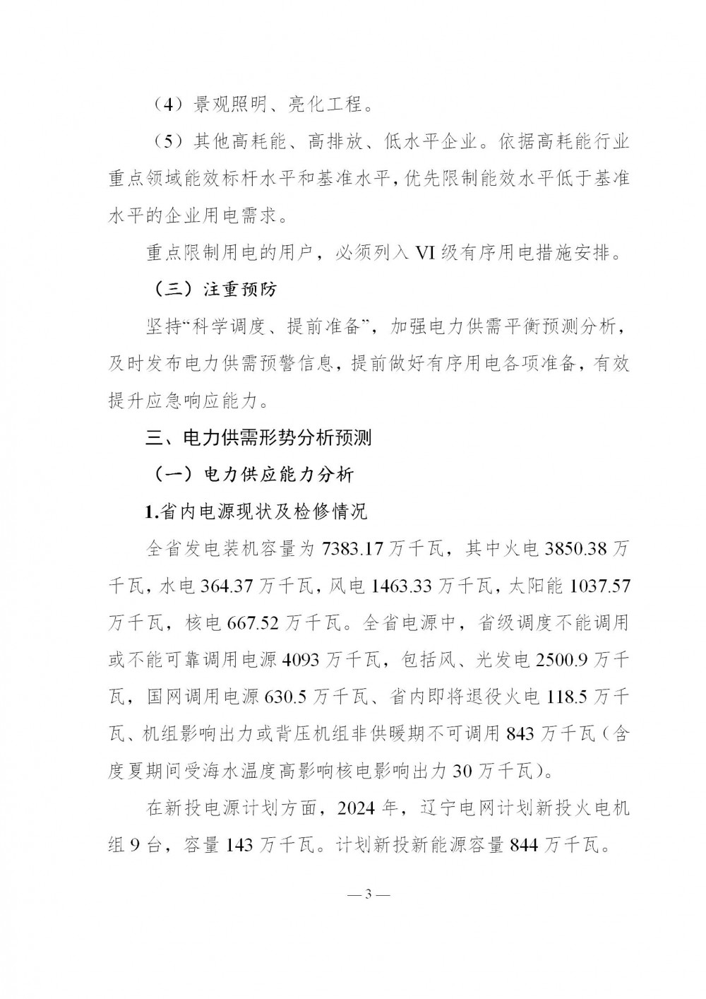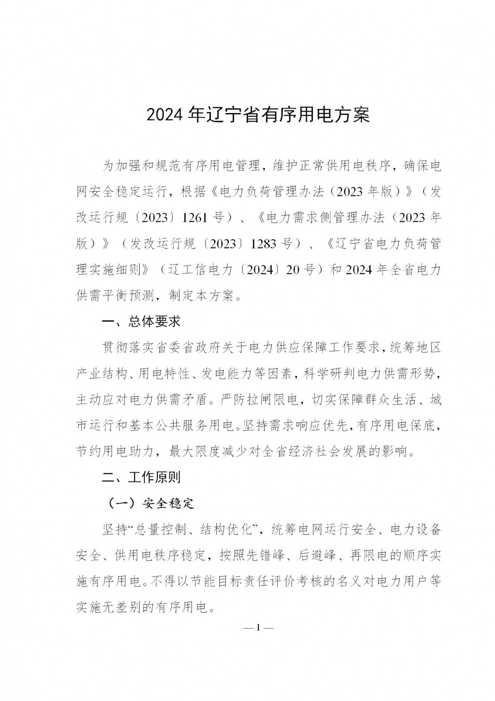辽宁省工业和信息化厅关于印发《2024年 辽宁省有序用电方案》的通知