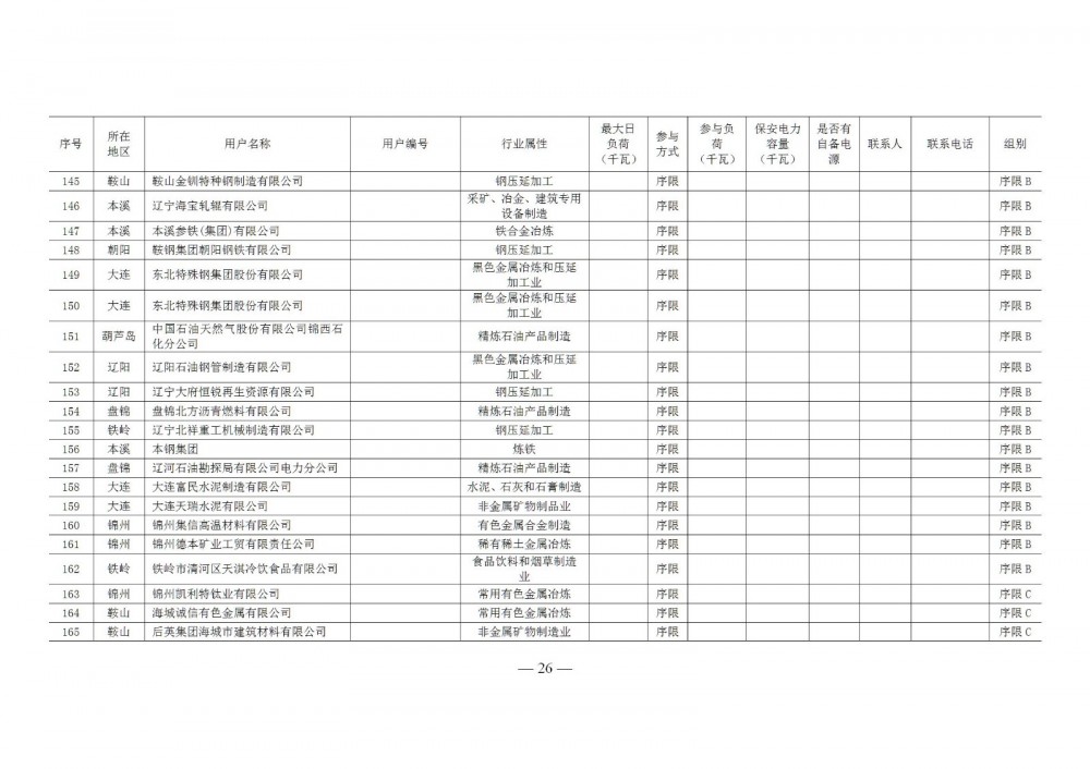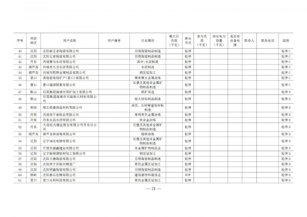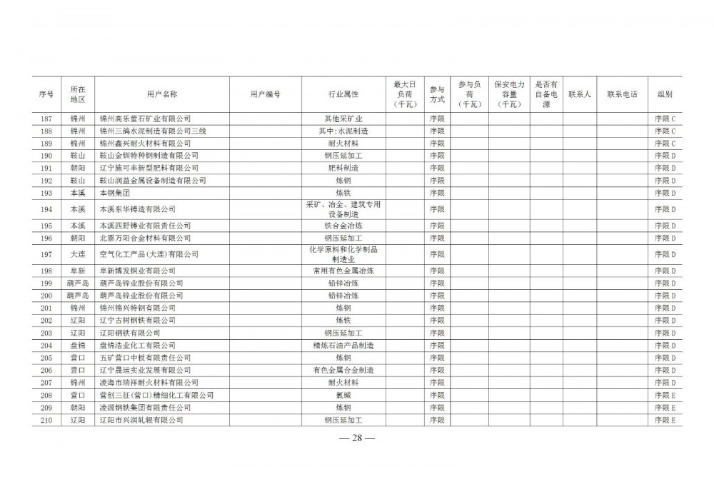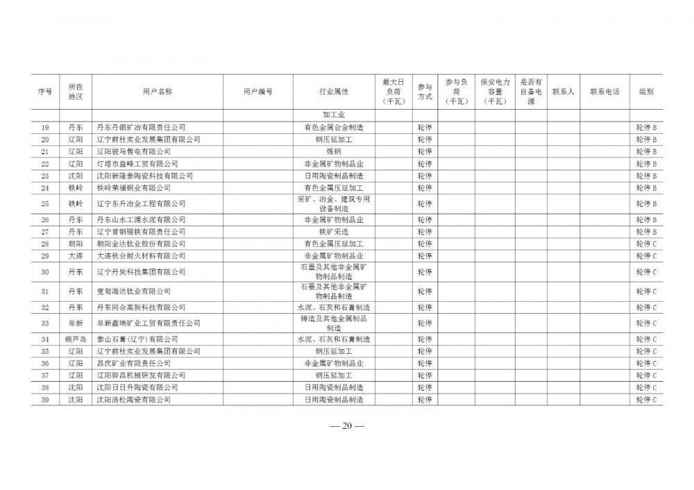 各市工业和信息化局,国网辽宁省电力有限公司: