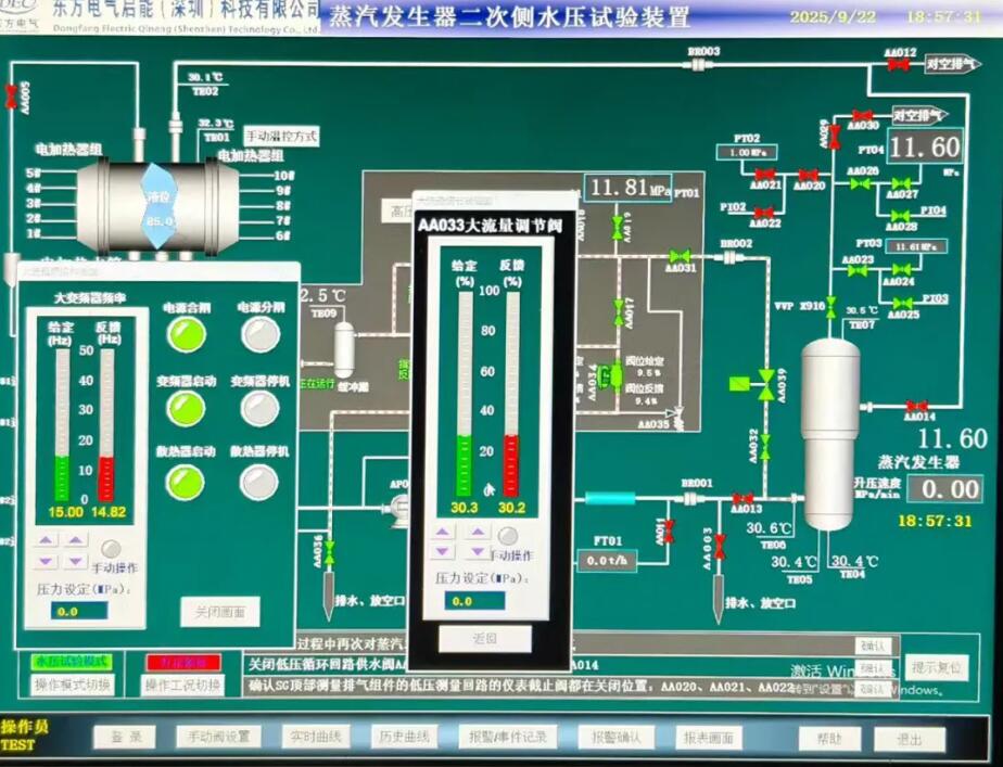 9月22日,三澳核电2号机组一环蒸汽发生器二次侧水压试验在11.57MPa最高压力平台稳压30分钟满足试验要求,标志着2号机组核岛安装工程关键里程碑“蒸发器二次侧水压试验全部完成”顺利实现。