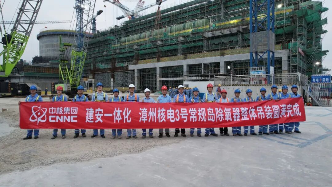 10月25日16时46分,漳州核电3号机组常规岛除氧器吊装就位,标志着漳州核电建安一体化工程建设首个大件设备吊装就位圆满完成,为后续大件设备引入树立标杆。