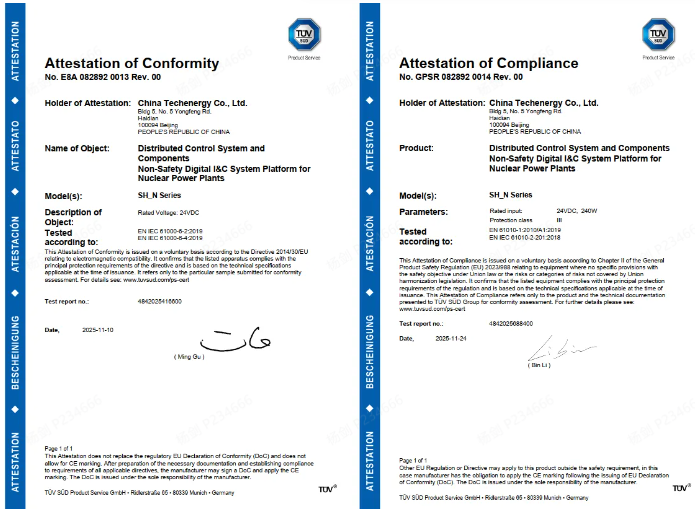 中广核数科自主研发核电非安全级仪控系统平台SH_N具备欧洲市场准入资质